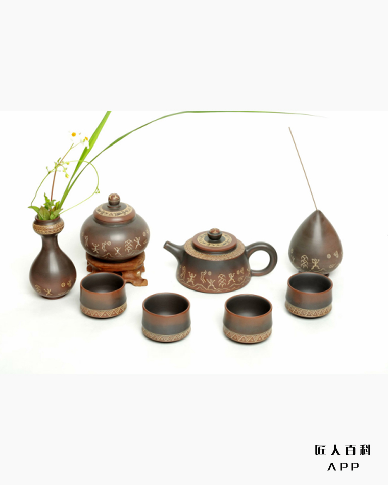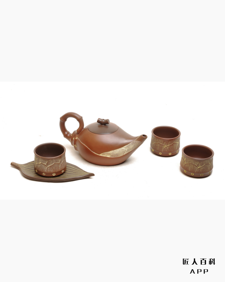 【壮乡韵套组】壶型规整,手工雕刻,汲取了囯家非遣广西壮锦的图案,线条流畅具有对称美,广西特有的铜鼓、绣球与界文化遗产花山岩画图腾,彰显了民族文明的多元包容,表达了对大自然的崇拜以及对美好生活的祝福。该产品荣获2021年“金凤凰”创新产品设计大赛铜奖。